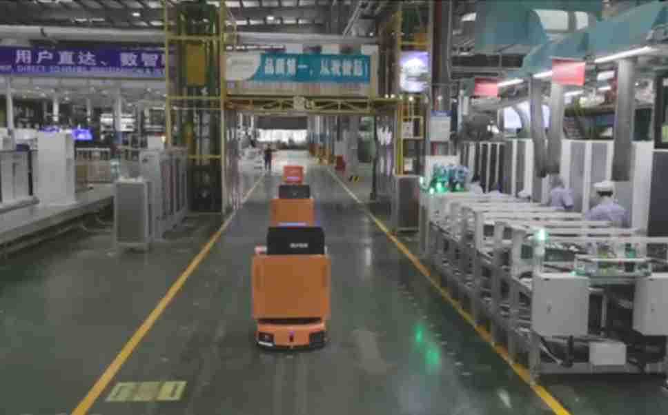 为车载冰箱物流配送打造的智能解决方案,,,包含产中物流通过潜伏举升AMR搬运至线边,,,产后成品物流智能仓储,,,流程包含产中物流智能齐套入库,,,,线边安灯叫料AMR智能配送至线边,,,,成品入库、、、出库,,,,通过无人堆高车机器人,,,智能仓储管理替代人工作业管理,,实现更高存储、、、更高效率、、更具柔性化的解决方案。。。